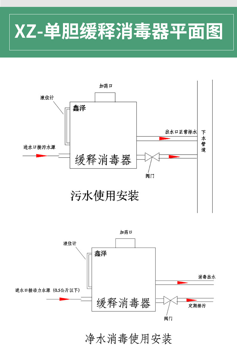 XZ-單膽緩釋消毒器安裝示意圖一: